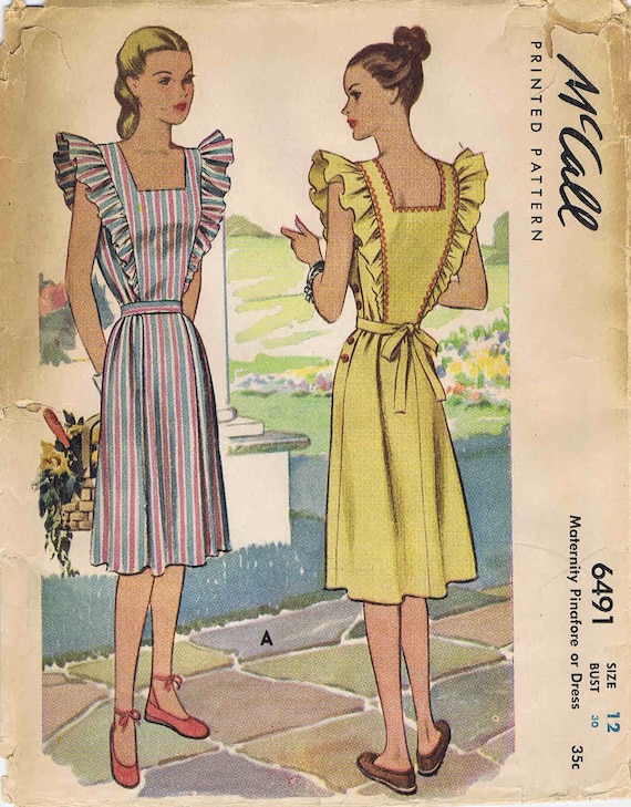 1940s Maternity Pinafore Or Dress Mccall 6491 Vintage Sewing Etsy